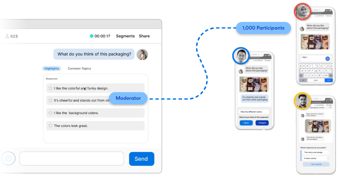 Remesh es una plataforma online que te permite encuestar a tu audiencia/usuarios en tiempo real. Mediante un chat "en vivo" podrás dirigir el sondeo hacia donde necesites.