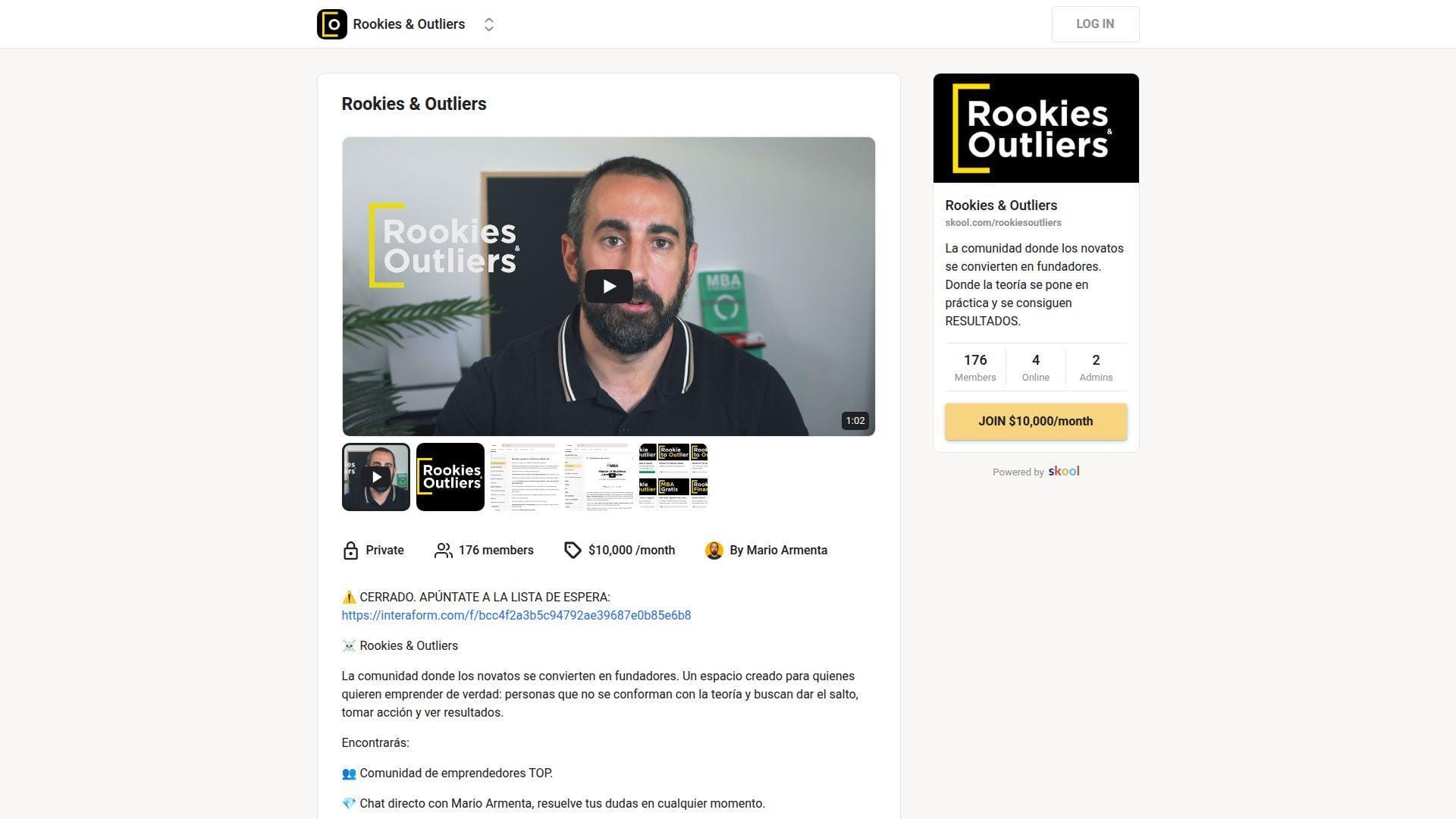 Idea #1. Rookies & Outliers, una comunidad TOP para emprendedores [$960 MRR 🤑]