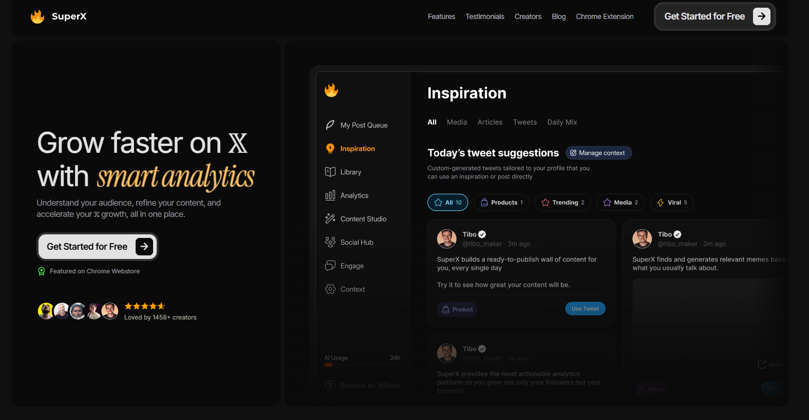 Crecer más rápido en cualquier red social es algo que todos queremos. Esto es lo que trata de solucionar SuperX, una herramienta que analiza los datos y te sugiere publicaciones para crecer más rápido.