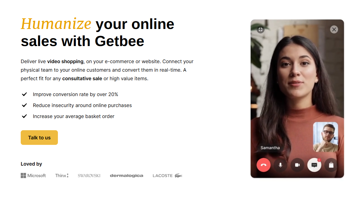 Su propuesta es que las marcas que venden productos complejos o de ticket medio-alto (moda premium, cosmética, mobiliario, etc.) pueden integrar un módulo de videollamada en su web. Un asesor habla con el cliente por vídeo en tiempo real, enseña productos, comparte pantalla y termina el checkout dentro de la misma sesión. Una acción pensada para que el vendedor pueda recomendar, añadir al carrito y cerrar la venta sin salir del entorno de la marca.