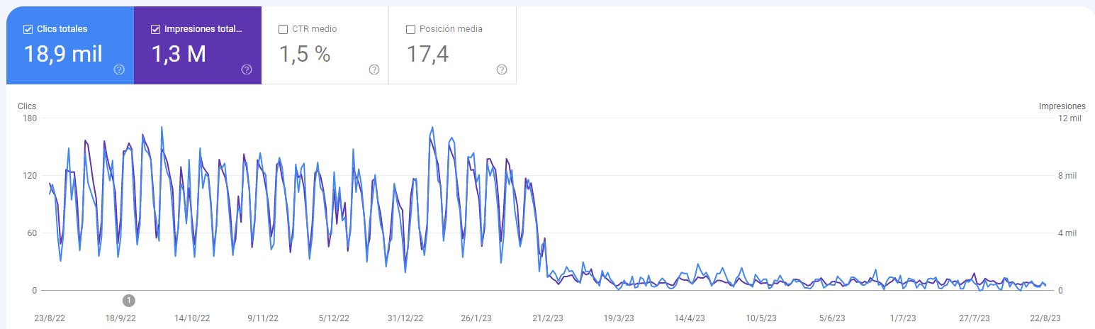 También acumulo fracasos. Webs que no han subido en tráfico, webs que han sido penalizadas, y webs que directamente no he acabado. Siempre me gusta recalcar esta característica del mundo online para que todo el mundo sepa que este oficio no es un camino de rosas.